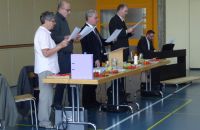 Im Übrigen verlief der geschäftliche Teil weitgehend ruhig und stand im Einklang mit dem Einüben verschiedener Lieder für den anschliessenden Gedenkgottesdienst in der Pfarrkirche für die verstorbenen Sängerinnen und Sänger in den Chören. Der Vorstand wurde in seiner bisherigen Zusammensetzung für zwei weitere Jahre bestätigt. Die DV fand mit einem Apéro riche in der Rickenhalle einen gelungenen Abschluss.